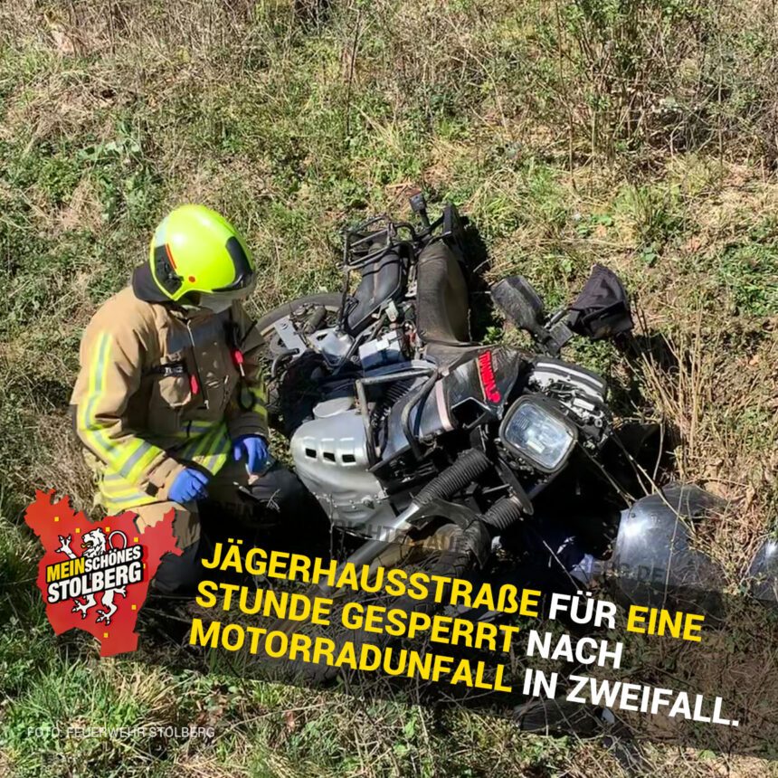 Nachdem heute Mittag gegen 13.26 Uhr ein Motorradfahrer bei einem Alleinunfall in Zweifall mittelschwer verletzt wurde, war die Jägerhausstraße für rund eine Stunde lang für den Verkehr gesperrt.