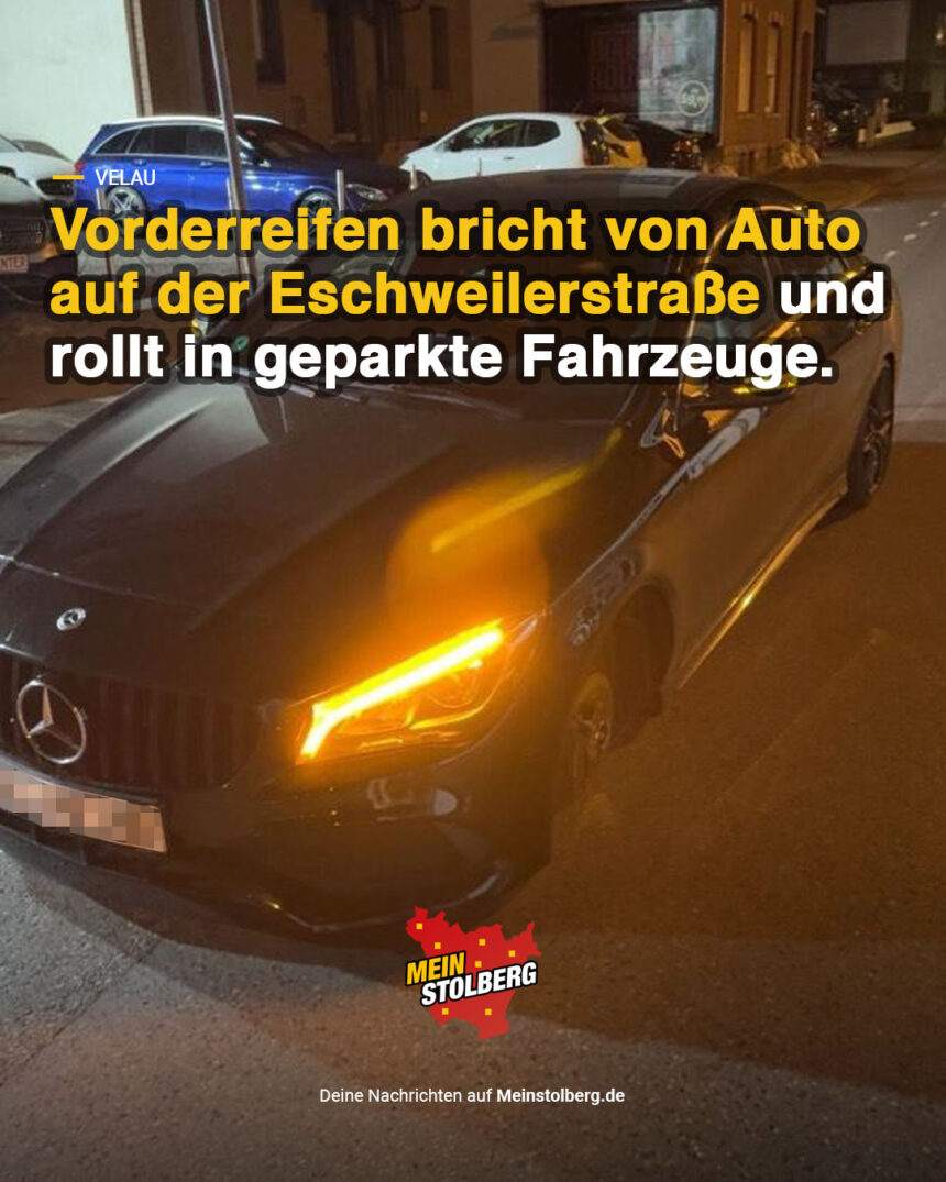 Mit einem großen Schrecken und mehreren Sachschäden endete für einen 18-jährigen Stolberger in der Nacht von Mittwoch auf Donnerstag ein äußerst ungewöhnlicher Unfall auf der Eschweilerstraße. Sein recht neuer Mercedes verlor auf der Geraden unerwartet ein Vorderrad.