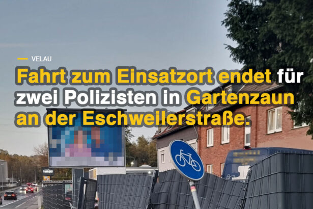 Polizisten verlieren Kontrolle über Streifenwagen und krachen in Gartenzaun an der Eschweilerstraße