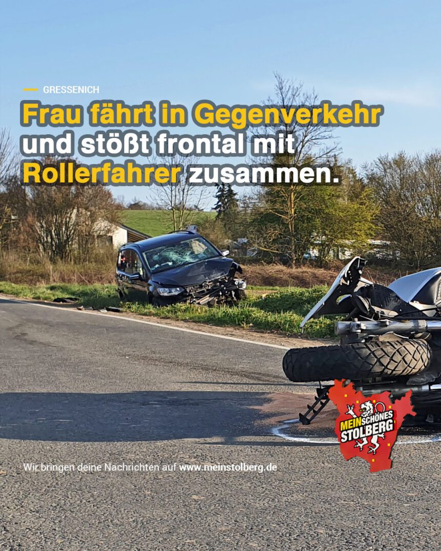 Stolbergerin fährt in Gegenverkehr und stößt frontal mit Roller zusammen