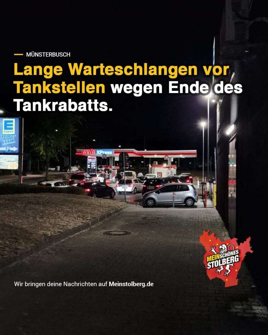 Lange Warteschlangen vor Tankstellen in Stolberg wegen Ende des Tankrabatts