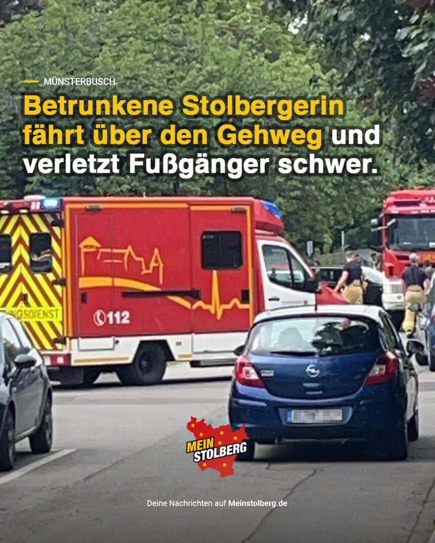 Betrunkene Stolbergerin fährt auf Gehweg und verletzt Fußgänger schwer