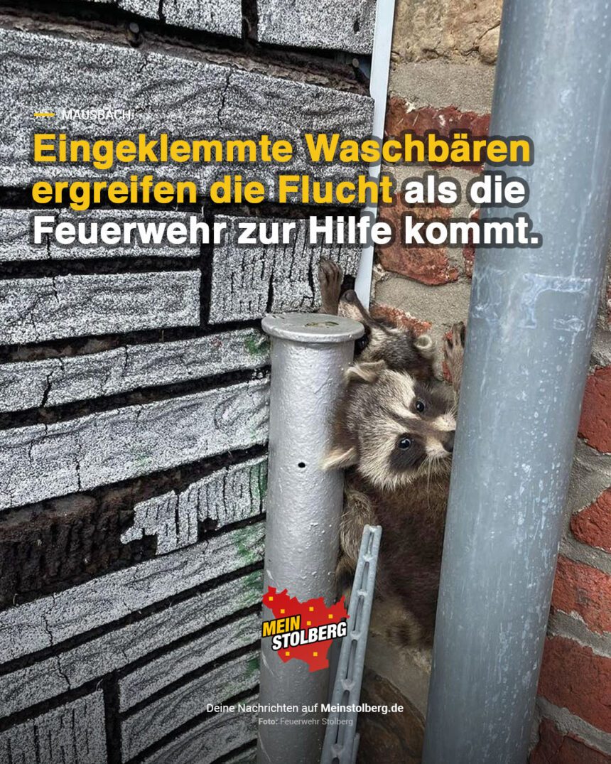„Eingeklemmte“ Waschbären flüchten als die Feuerwehr kommt