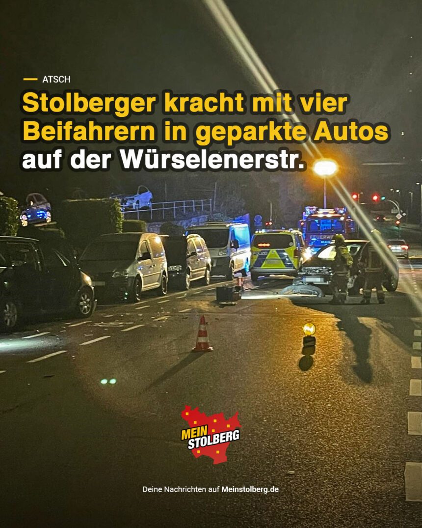 Stolberger kracht mit seinen 4 Beifahrern in geparkte Autos auf der Würselener Straße