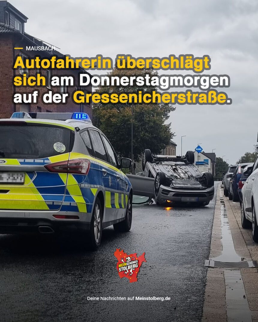 Autofahrerin überschlägt sich auf der Gressenicher Straße
