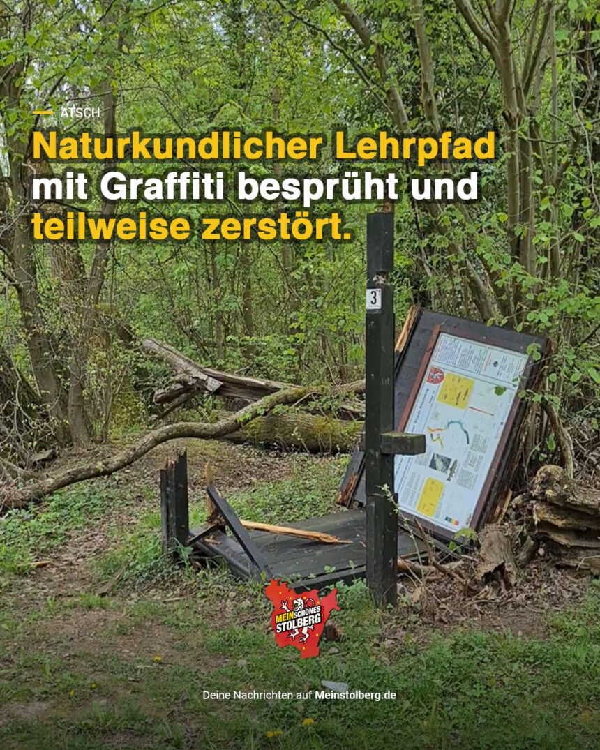 Naturkundlicher Lehrpfad mit Graffiti besprüht und teilweise zerstört
