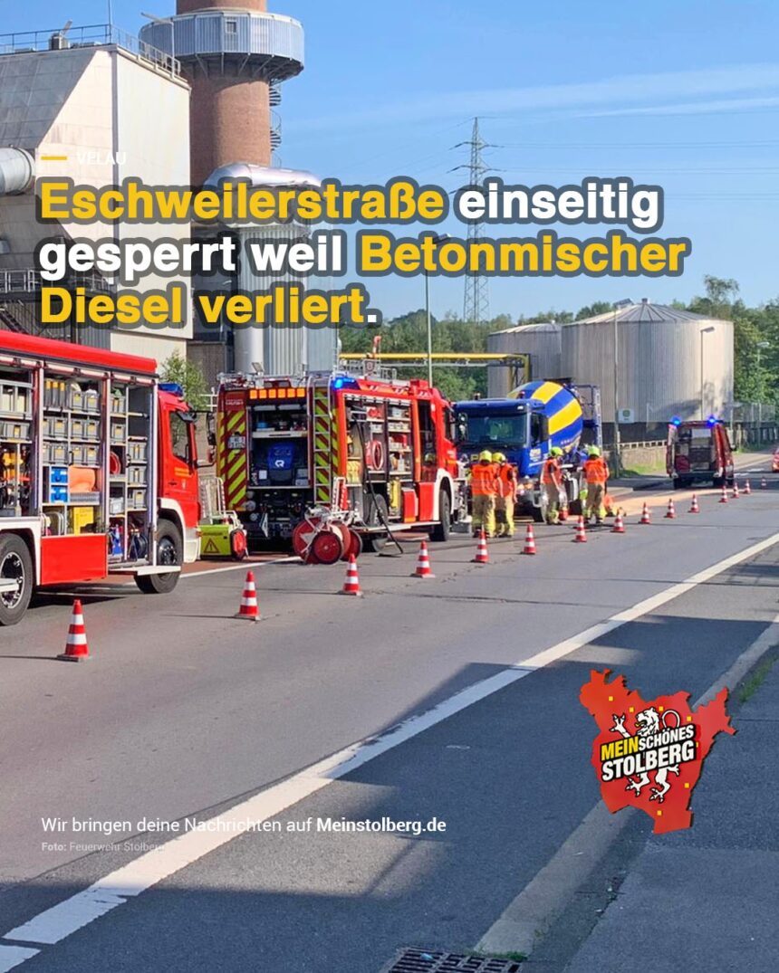 Betonmischer verliert Diesel auf der Eschweilerstraße