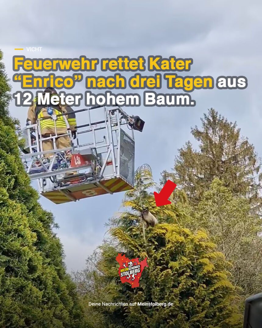 Feuerwehr rettet Kater „Enrico“ nach drei Tagen aus 12 Meter hohem Baum