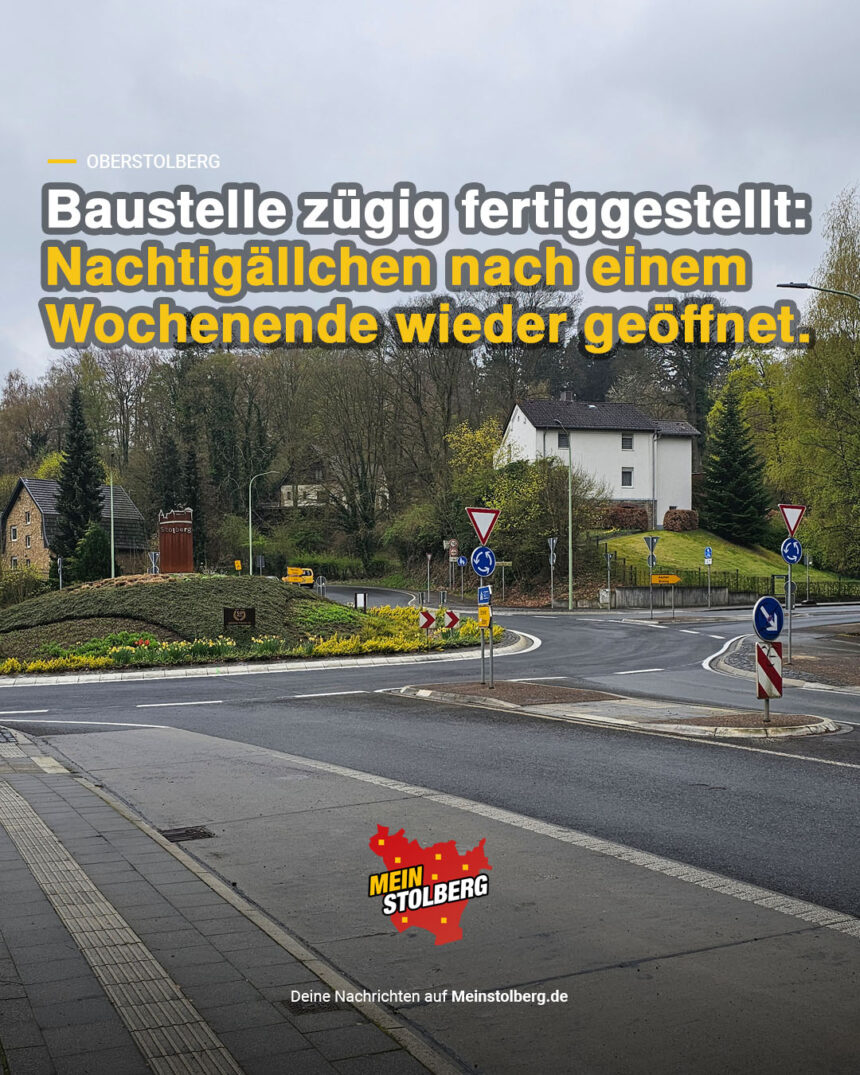 Viele Stolberger staunten nicht schlecht: Während andere Baustellen im Stadtgebiet erneut verlängert wurden, konnte der Kreisverkehr am Nachtigällchen nach nur einem Wochenende schon wieder befahren werden. Innerhalb weniger Tage hatte die Baufirma die gesamte Straße erneuert und schon am Sonntag die Sperrung wieder aufgehoben.
