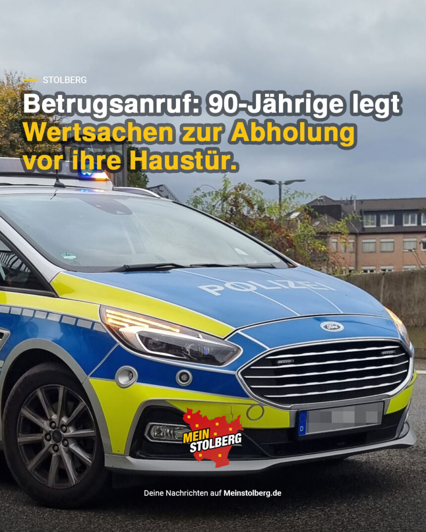 Am Mittwoch ist erneut eine 90-jährige Stolbergerin Opfer von falschen Polizisten geworden. Unbekannte Täter hatten die Seniorin angerufen und sie dazu bewegt, ihre Wertsachen zur Abholung vor ihre Haustüre zu legen.