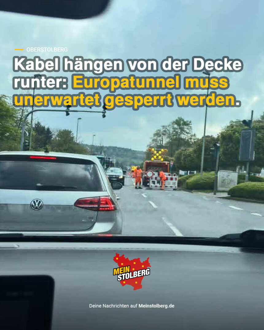 Gegen 12 Uhr wurde die Europastraße heute unerwartet für den Verkehr gesperrt. Die Durchfahrt durch den Europatunnel ist nicht mehr verkehrssicher, da Kabel auf die Fahrbahn hängen.