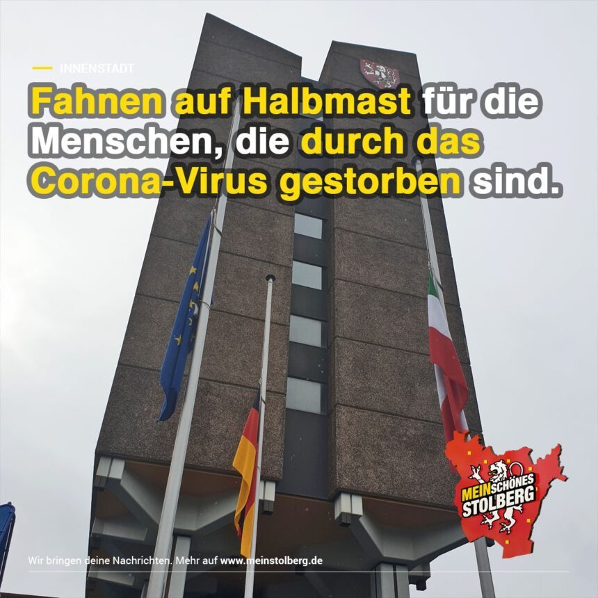 Auch die Fahnen am Stolberger Rathaus wehen aus diesem Grund heute den ganzen Tag auf Halbmast.