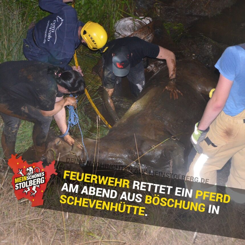 Feuerwehr rettet Pferd aus Böschung in Schevenhütte