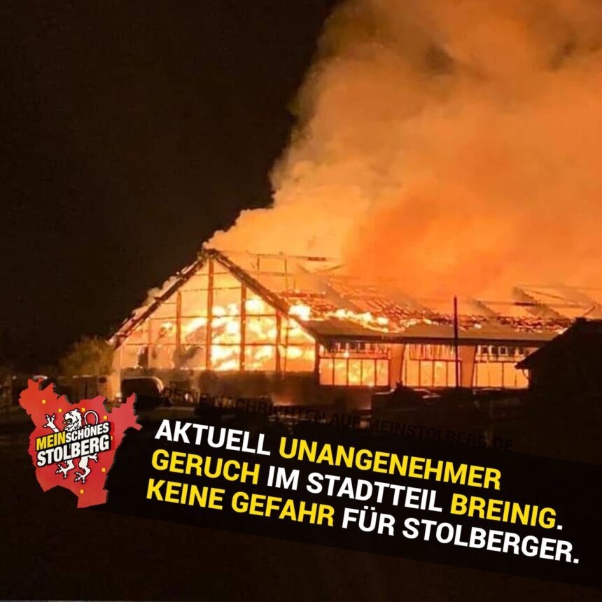 Geruchsentwicklung wegen Großbrand in Aachen