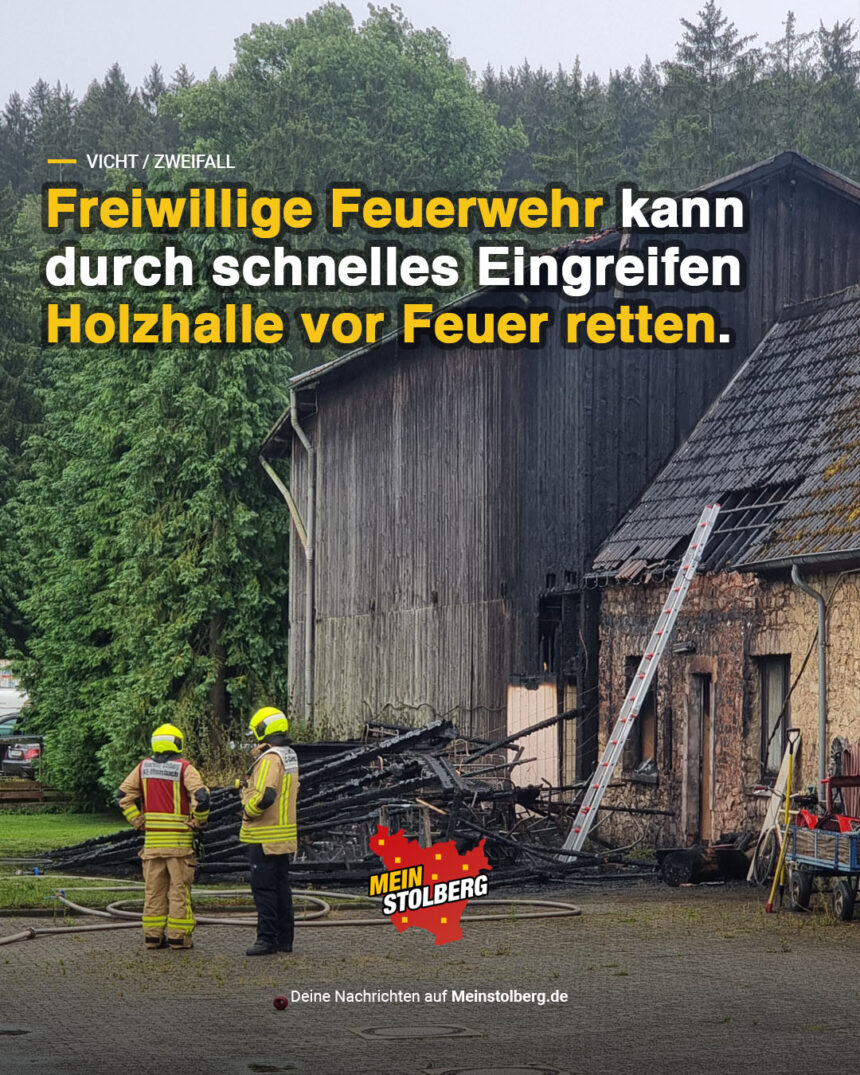 Am Dienstagnachmittag konnten die Einsatzkräfte der freiwilligen Feuerwehren aus Zweifall und Vicht durch ihr schnelles Eintreffen schlimmeres verhindern: Ein Carport war in Brand geraten und das Feuer griff bereits auf eine dahinter liegende Holzhalle über.