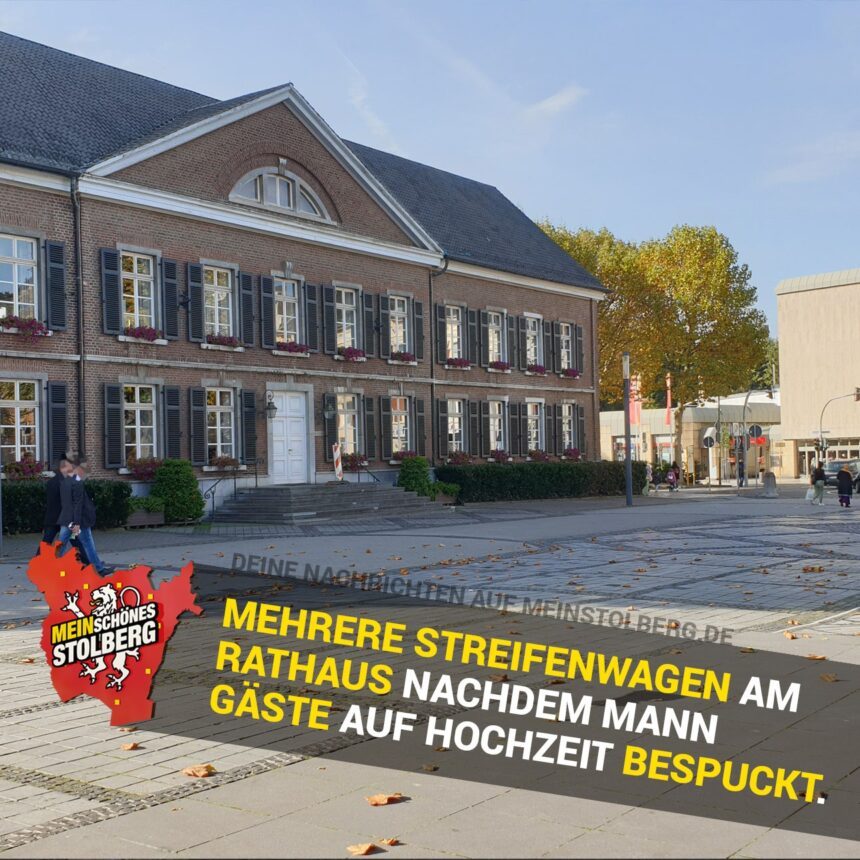 Gleich mehrere Streifenwagen rückten am Dienstag zum Stolberger Rathaus aus, weil Beobachter einen Streit von 30 Personen gemeldet hatten.