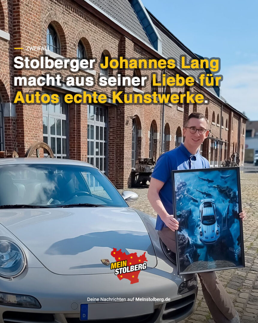 Johannes ist in der Szene bekannt für seine leidenschaftliche Begeisterung für Autos. Nachdem er Jahrelang Tuningtreffen am Zinkhütter Hof organisiert hat, verbindet der Stolberger seine Liebe für Autos nun mit Kunst. Autoliebhaber können ihre Begeisterung so in Form von Kunstwerken verewigen.