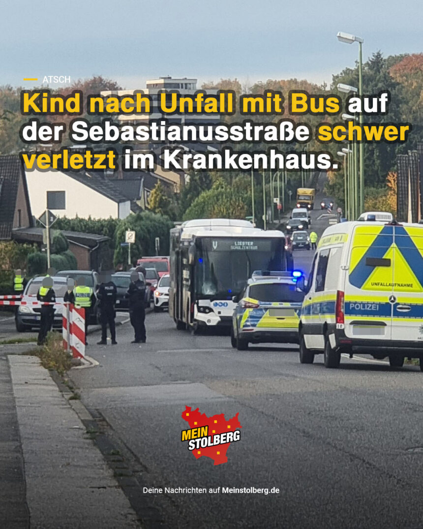 Ein schrecklicher Start in den Freitagmorgen: Auf der Sebastianusstraße kam es gegen 7:30 Uhr zu einem schweren Verkehrsunfall zwischen einem Bus und einem Kind. Nach ersten Informationen wurde das Kind dabei schwer verletzt und auf schnellstem Weg ins Krankenhaus gebracht.