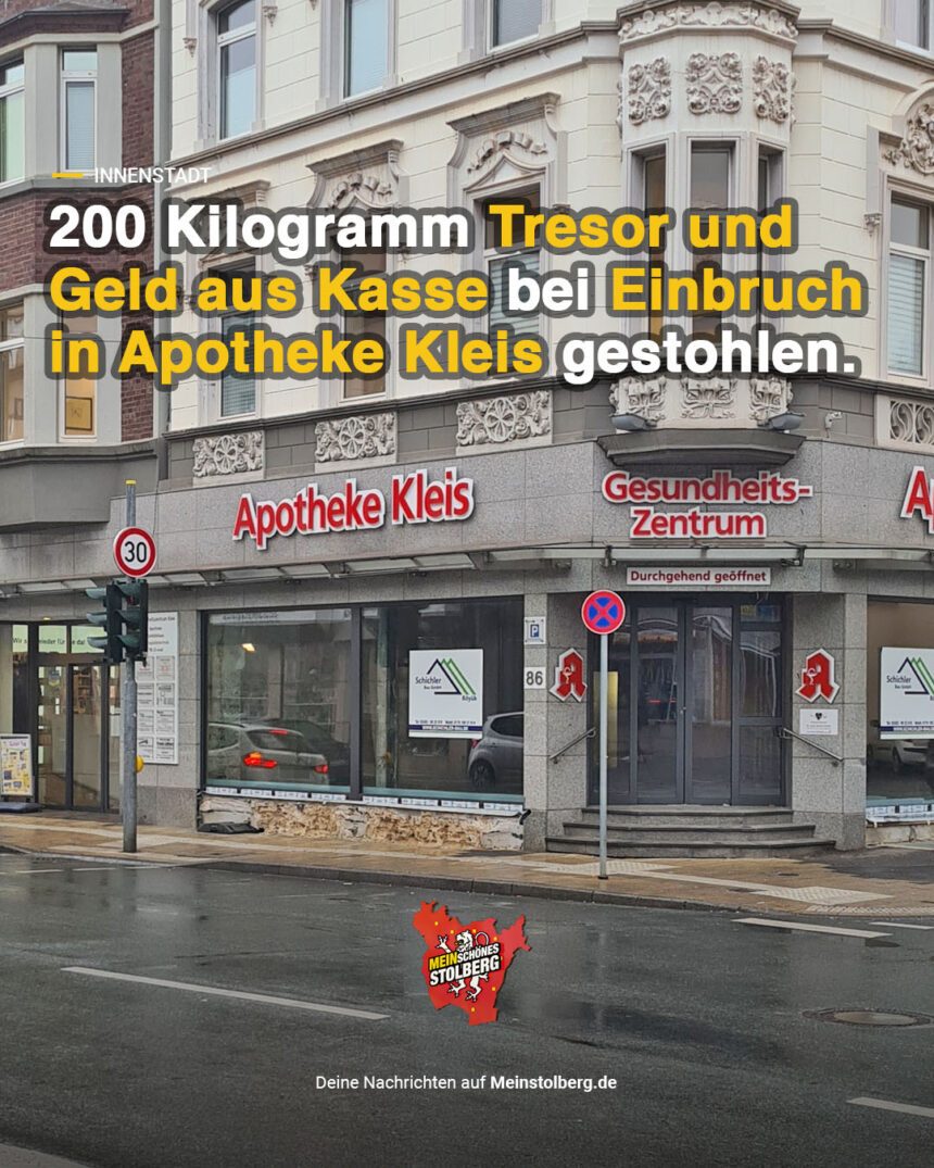 Tresor und Bargeld bei Einbruch in Apotheke Kleis gestohlen