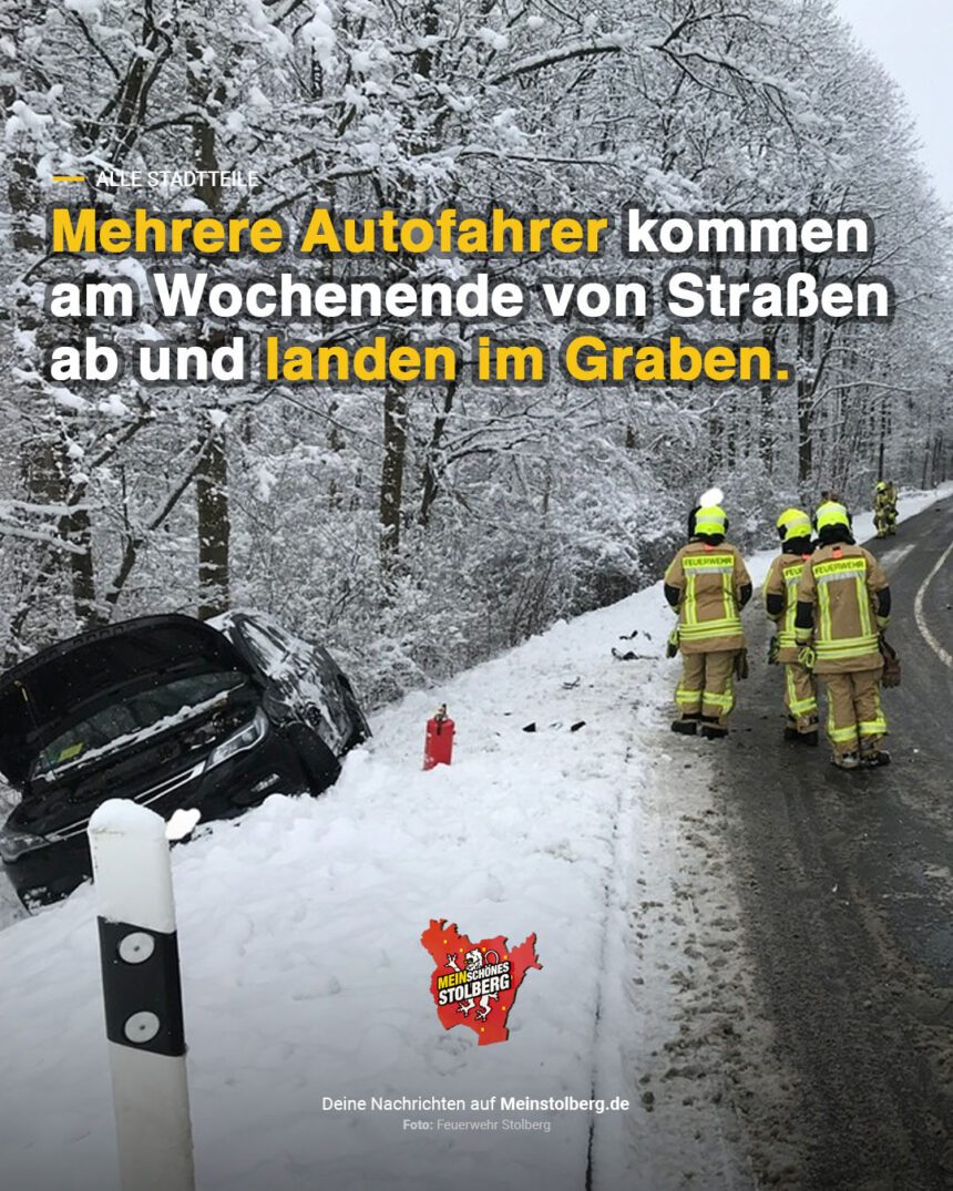Am Wochenende mussten Feuerwehr und andere Helfer mehrfach Fahrzeuge aus Straßengräben befreien. Bei den kalten Temperaturen und anhaltenden Schneefällen rutschten einige Stolberger von der Fahrbahn.