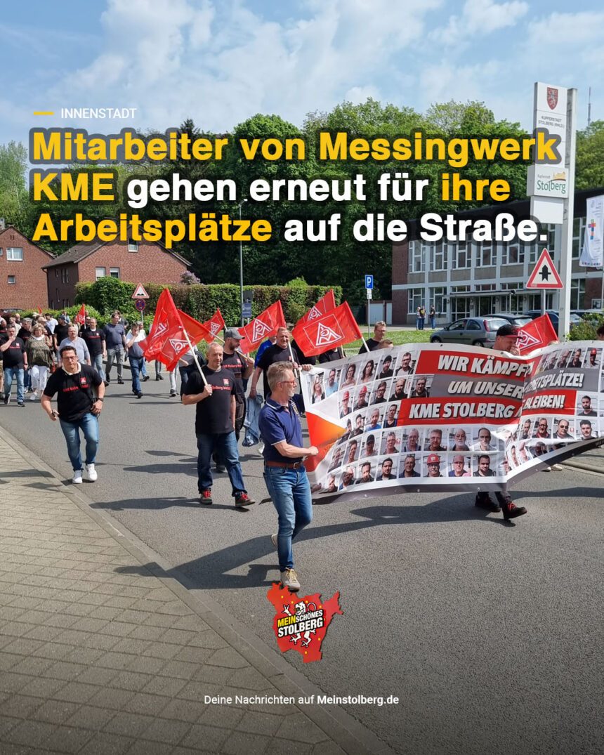 Am letzten Mittwoch legte die Frühschicht des ältesten Messingwerks in Europa zum ersten Mal die Arbeit nieder, um mit einem Banner durch die Stadt zu ziehen und auf ihre Situation aufmerksam zu machen: