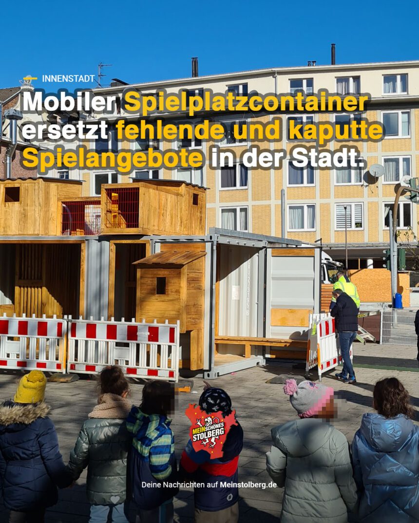 Um die Zwischenzeit zu überbrücken wurde aus Spendengeldern vom Spendenkonto „Stolberg hilft“ ein sogenannter mobiler Spielcontainer für rund 50.000 Euro angeschafft.
