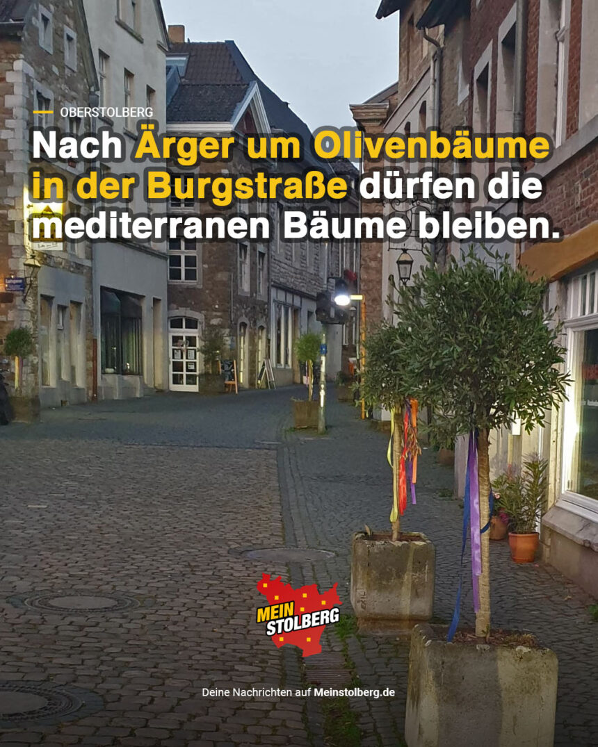 In der Stolberger Altstadt sorgen seit Wochen kleine Olivenbäume für großen Ärger unter den Anwohnern in der Burgstraße. Nach mehrfachen Diskussionen ist am Mittwoch die Entscheidung gefallen: Die Bäumchen dürfen bleiben.