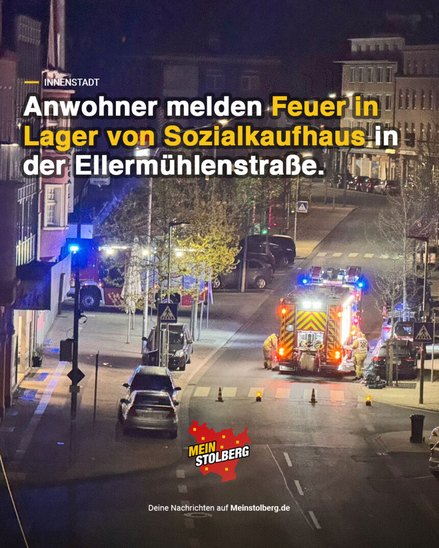 In der Nacht von Donnerstag auf Freitag ist in der Stolberger Innenstadt ein Feuer im Lager eines Sozialkaufhauses in der Ellermühlenstraße ausgebrochen. Gegen 2:10 Uhr hatten Anwohner aufsteigenden Rauch aus…