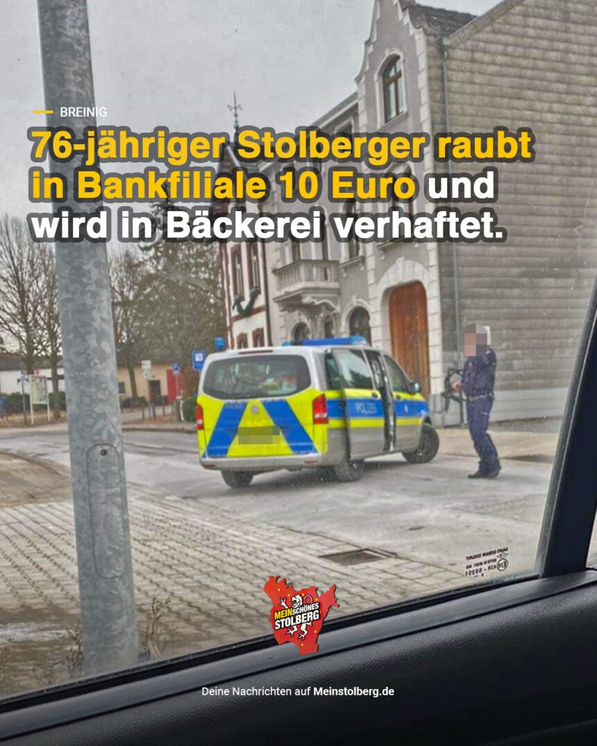 76-jähriger bewaffneter Stolberger raubt 10 Euro und geht in Bäckerei