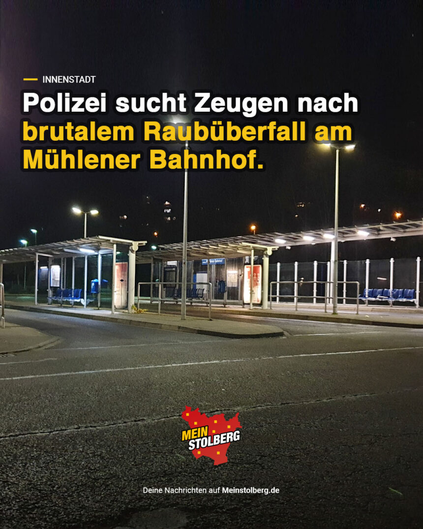 Am vergangenen Sonntagabend wurde ein 25-jähriger Mann am Mühlener Bahnhof Opfer eines brutalen Raubüberfalls. Kurz nachdem der Stolberger am Mühlener Bahnhof aus dem Zug gestiegen war, überraschten Ihn seine Angreifer und schlugen ihn brutal zu Boden. Jetzt sucht die Polizei Zeugen.