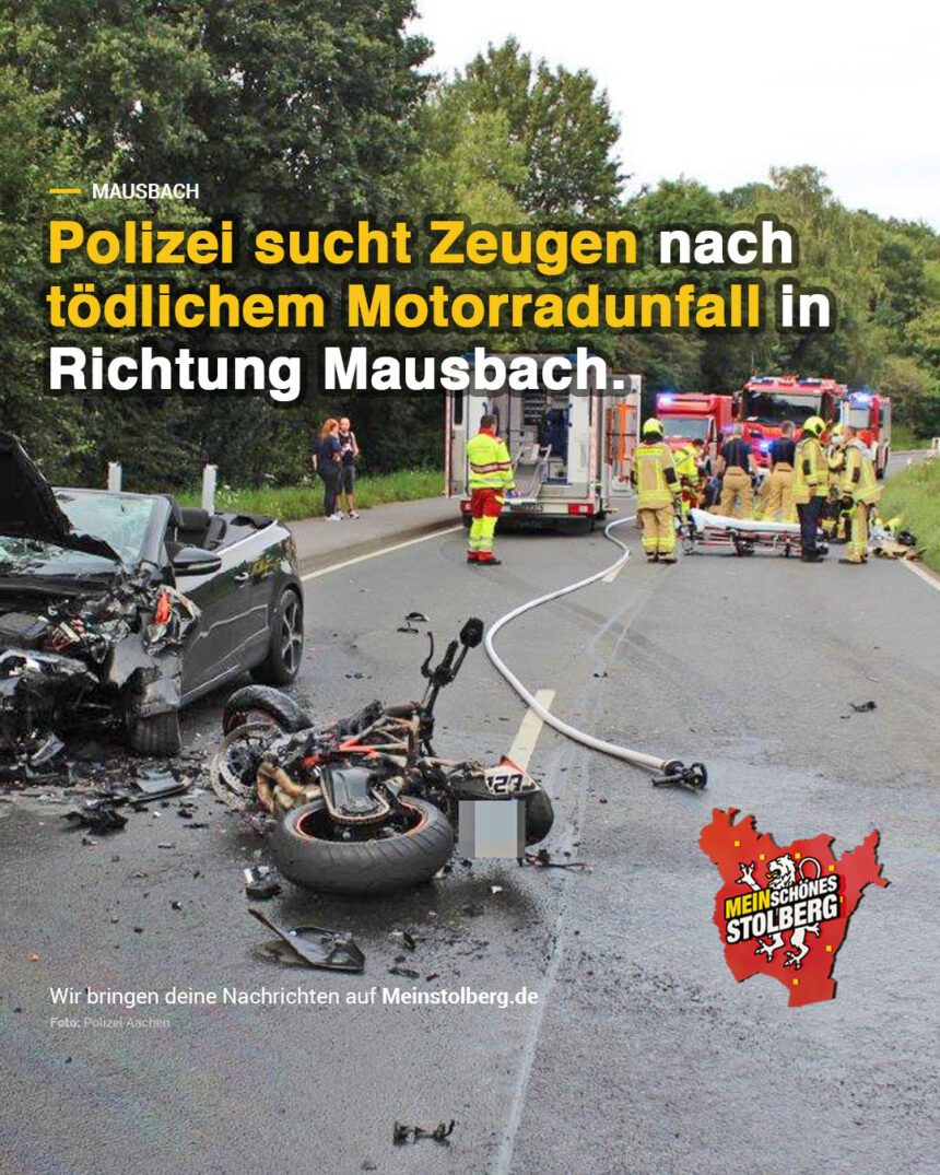 Weiterhin werden die beiden Motorradfahrer gesucht, die unmittelbar nach dem Unfall an der Unfallstelle aus Richtung Mausbach kommend eintrafen und bei der Versorgung des Verletzten halfen.