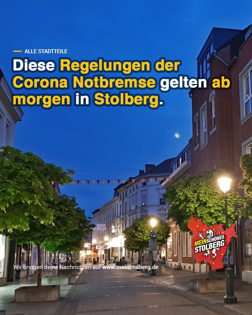 Für Stolberg als nicht kreisfreie Stadt gelten daher die Inzidenzwerte der Städteregion Aachen, die in den letzten 3 Tagen bei 147, 136 und 152 lagen. Damit treten auch bei uns ab morgen die neuen Regelungen und damit Beschränkungen der Corona-Notbremse in Kraft.
