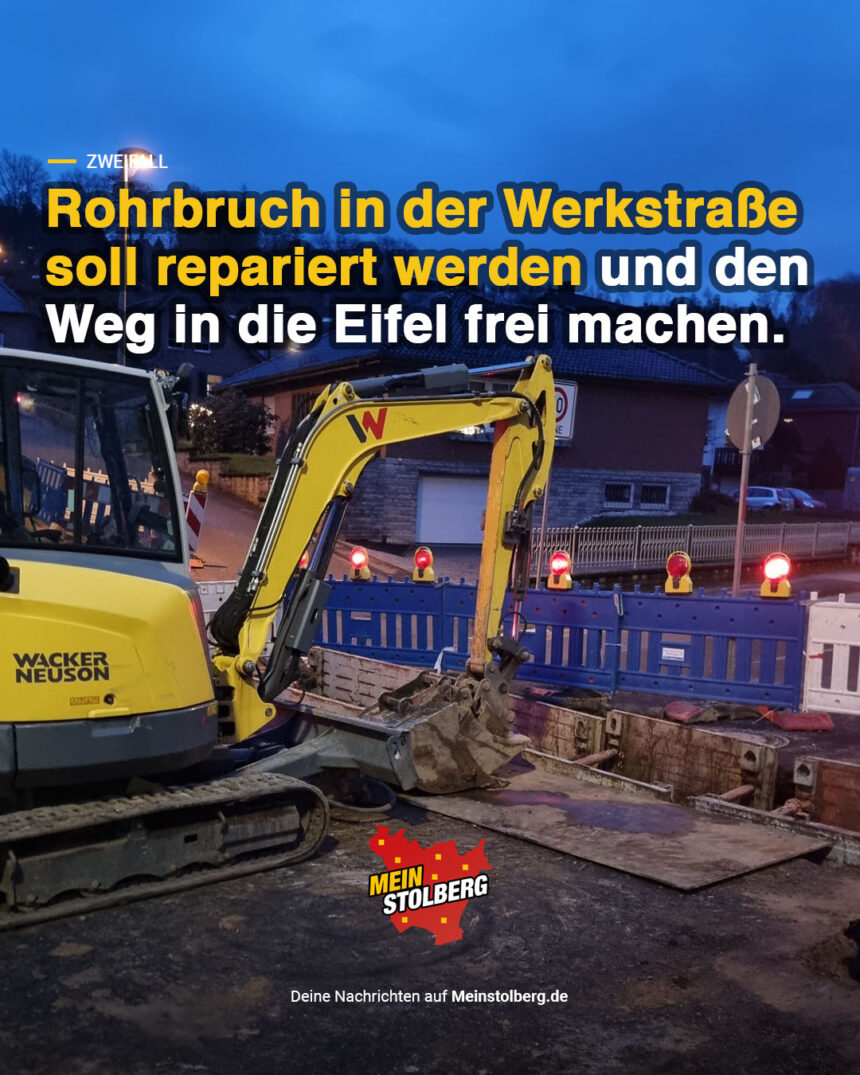 „Ab dem heutigen Montag ist die Straße Werkerbend in Zweifall im Einmündungsbereich zur Werkstraße wegen der Behebung eines Wasserrohrbruchs und Asphaltierungsarbeiten voraussichtlich bis Ende der Woche gesperrt“, erklärt die Stadt Stolberg.