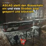 Im Verlauf des Nachmittags kamen dann die städtischen Räumarbeiten nicht mehr hinterher, woraufhin mehrere Straßen vollständig für die Durchfahrt gesperrt werden mussten. Betroffen waren dabei unter anderem Buschmühle, wo sich zwei LKWs festgefahren hatten und die Eschweilerstraße auf der Busse, LKWs und Autos quer standen.