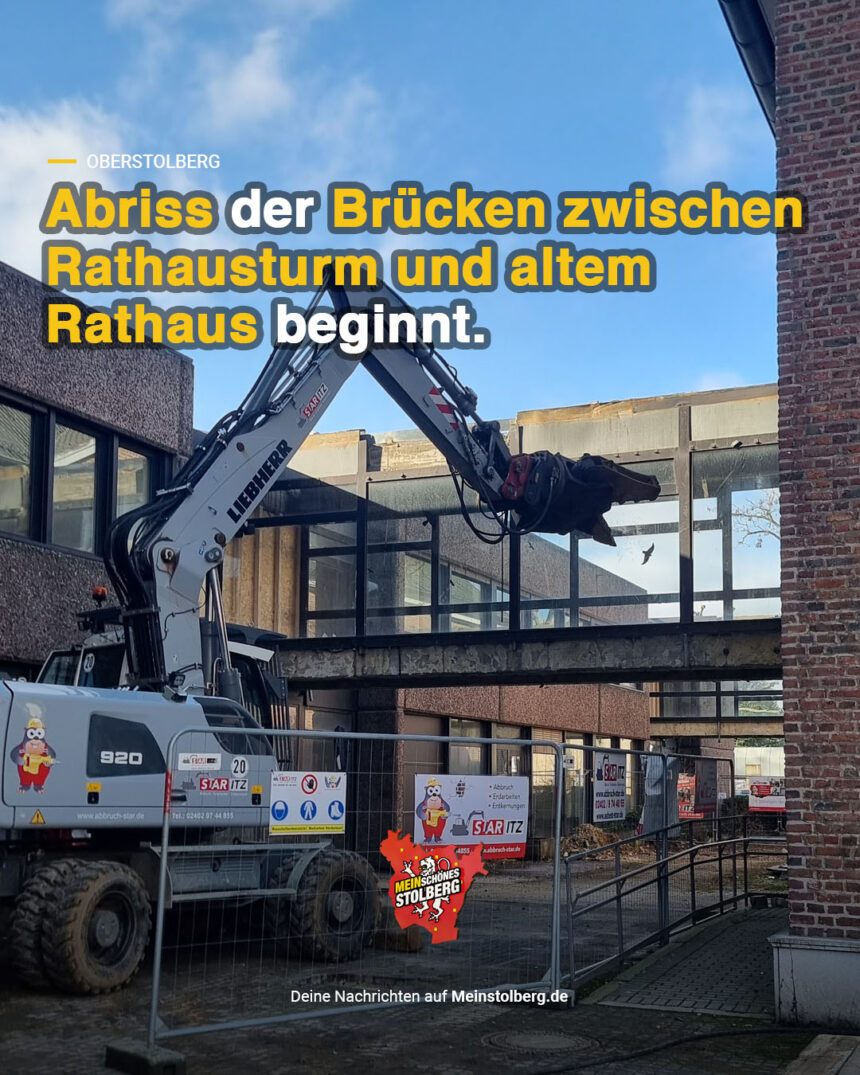 Abriss der Brücken zum historischen Stolberger Rathaus beginnt