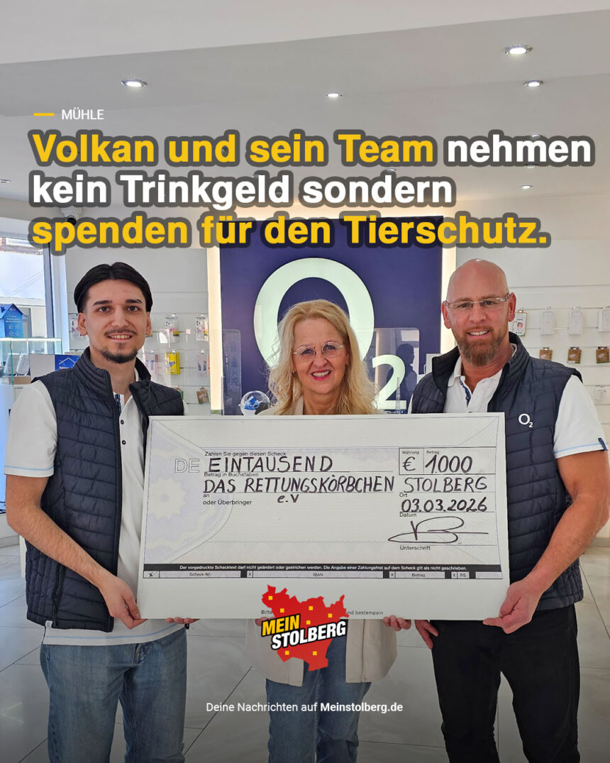 Eine kleine Dose auf dem Tresen mit großer Wirkung: Volkan Berber und sein Team verzichten das ganze Jahr über auf Trinkgeld. Stattdessen wandert in seinem Geschäft jede Münze, die Kunden dalassen wollen, direkt in einen Spendentopf. Jetzt konnte der Geschäftsmann von der Mühle die gesammelte Summe überreichen: 1.000 Euro für einen Tierschutzverein.
