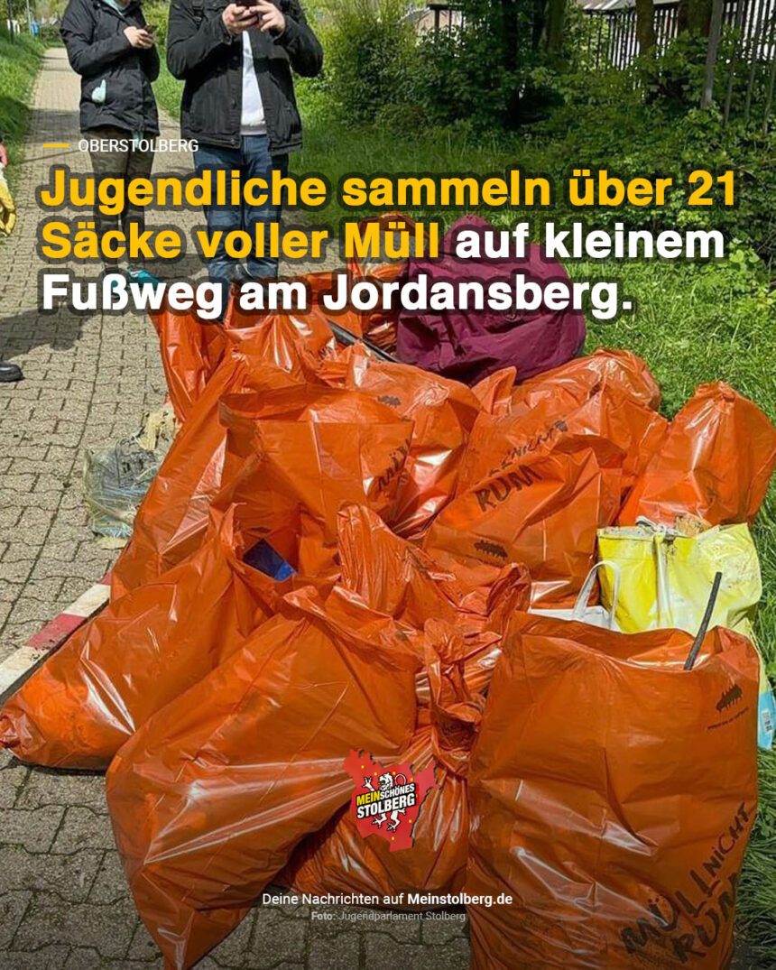 Jugendliche sammeln 21 Säcke voller Müll auf kleinem Fußweg am Jordansberg