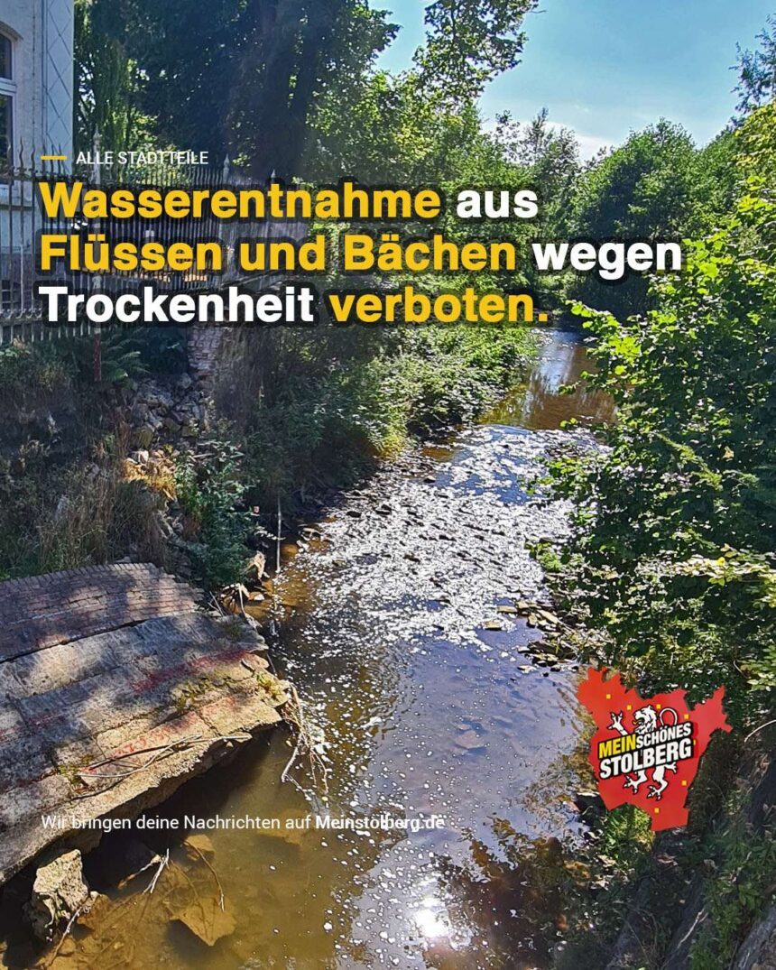 Wasserentnahme aus Stolberger Flüssen und Bächen wegen Trockenheit verboten