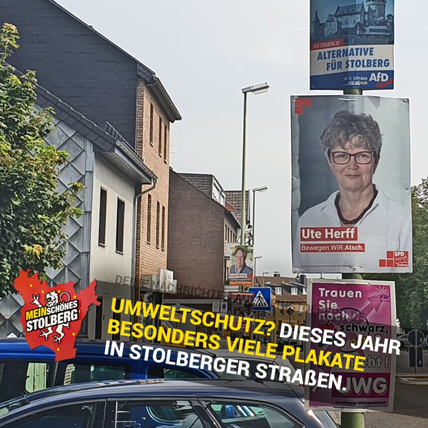 Wer aktuell durch Stolberg fährt, der sieht an fast jeder Laterne 2 bis 3 Wahlplakate hängen. Man wird fast schon erschlagen von der Menge an Wahlwerbung die in diesem Jahr von den Parteien gemacht wird.