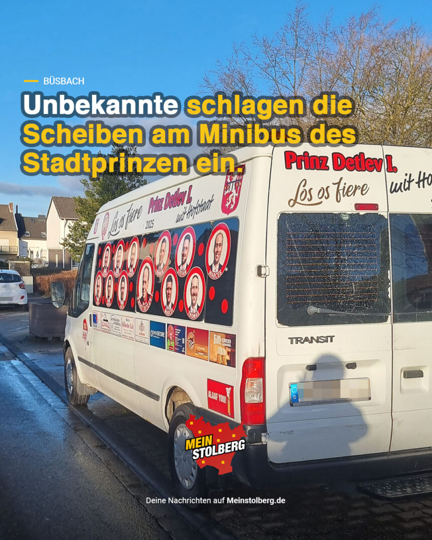 Am Wochenende wurde die Feierlaune des Stadtprinzen durch einen unschönen Vorfall getrübt: In der Nacht von Samstag auf Sonntag haben Unbekannte mehrere Scheiben am Minibus der Stolberger Tollität eingeschlagen.