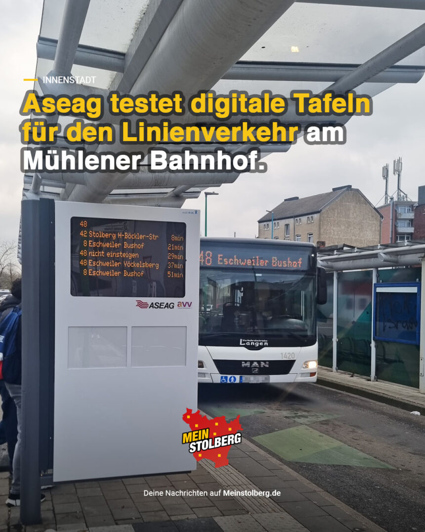 ASEAG testet digitale Anzeigetafeln für den Linienverkehr am Mühlener Bahnhof
