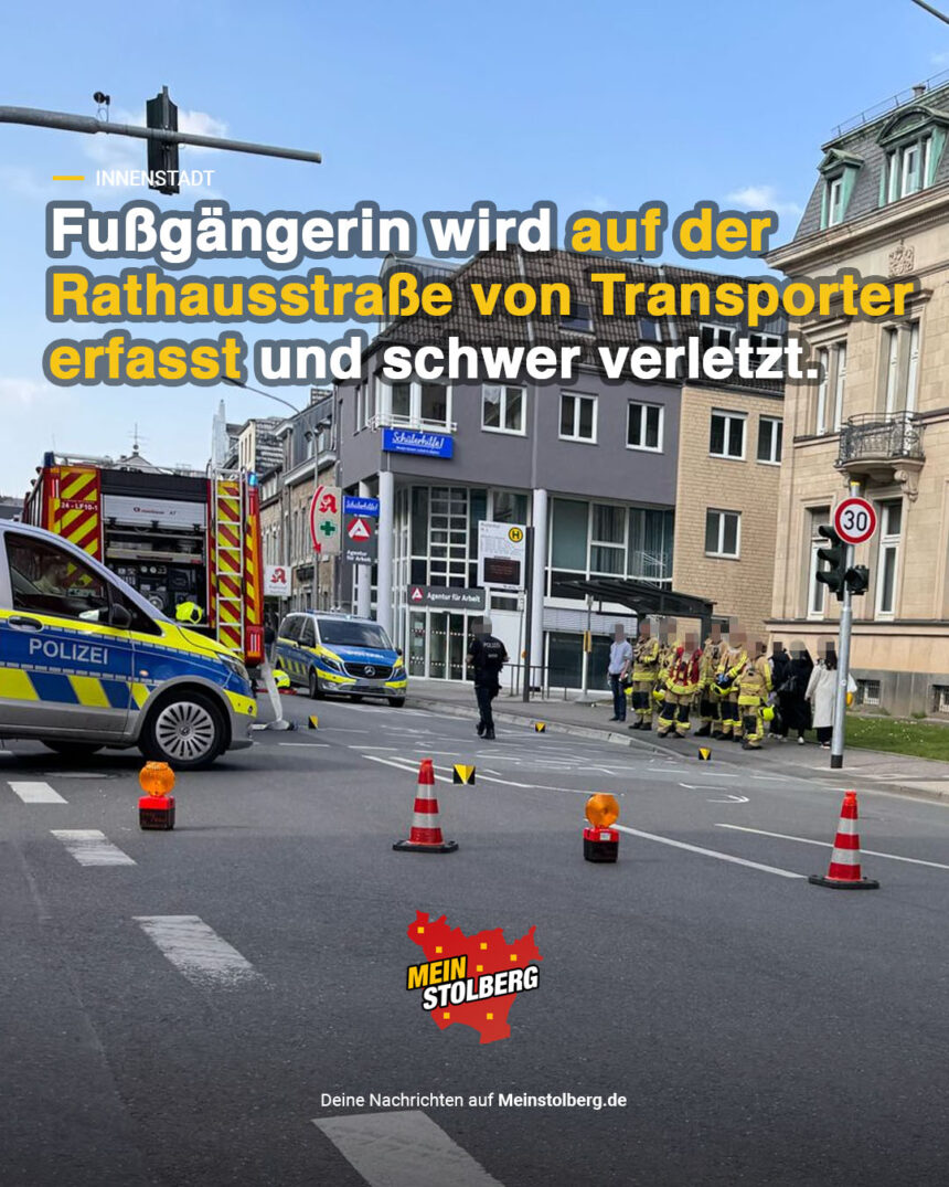Fußgängerin auf der Rathausstraße von Transporter erfasst und schwer verletzt