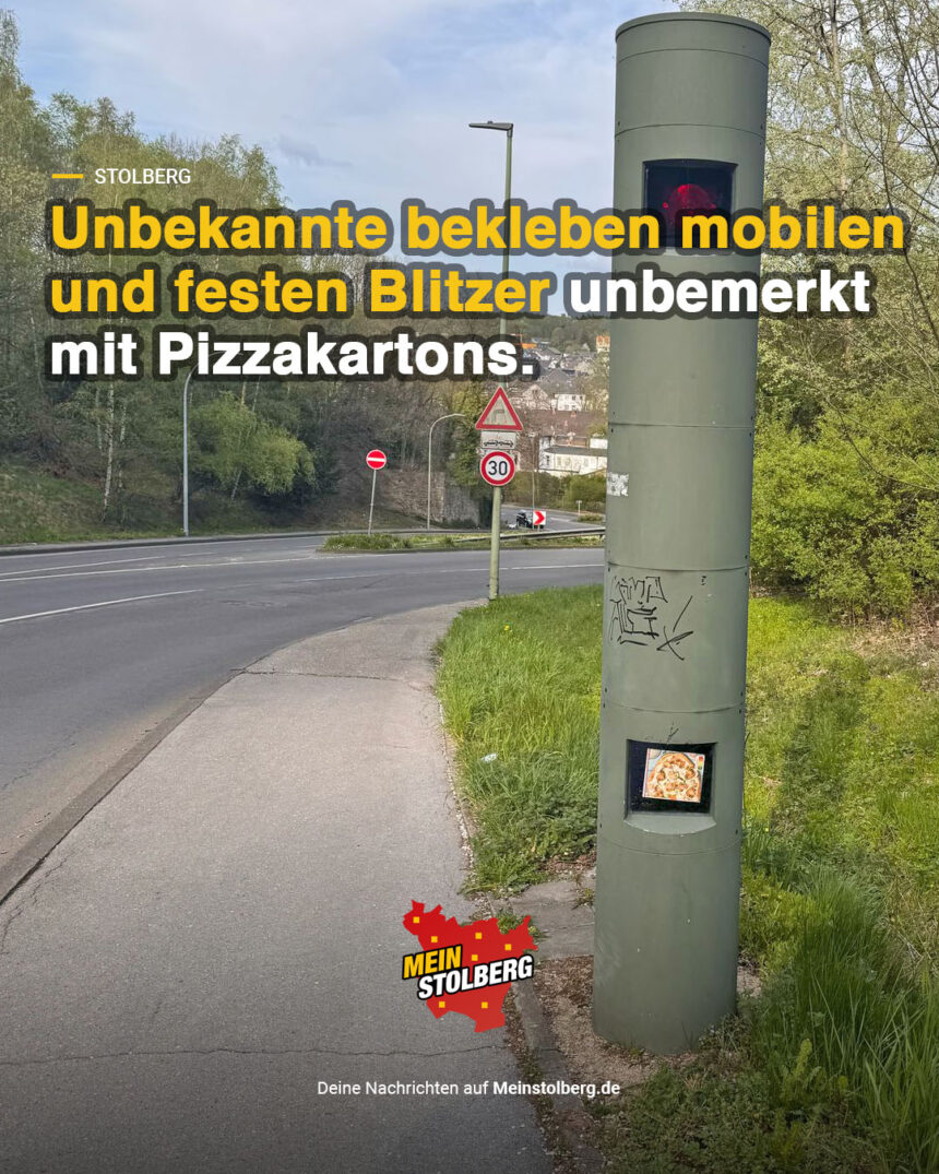 Unbekannte bekleben Blitzer in Stolberg unbemerkt mit Pizzakartons