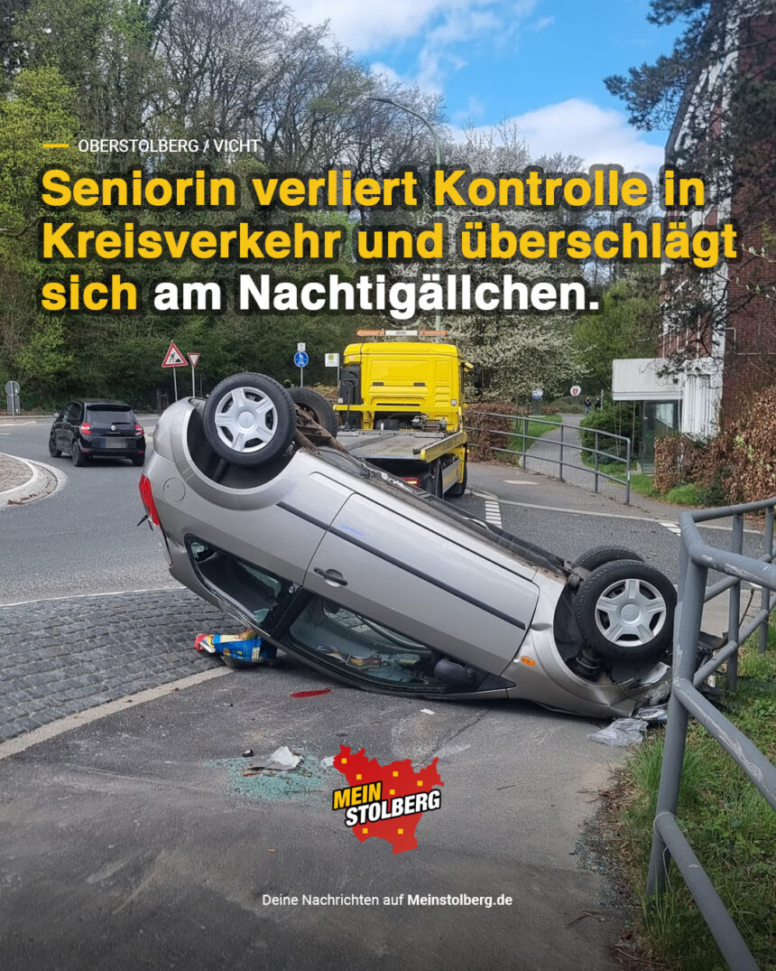Seniorin verliert die Kontrolle im Kreisverkehr und überschlägt sich am Nachtigällchen