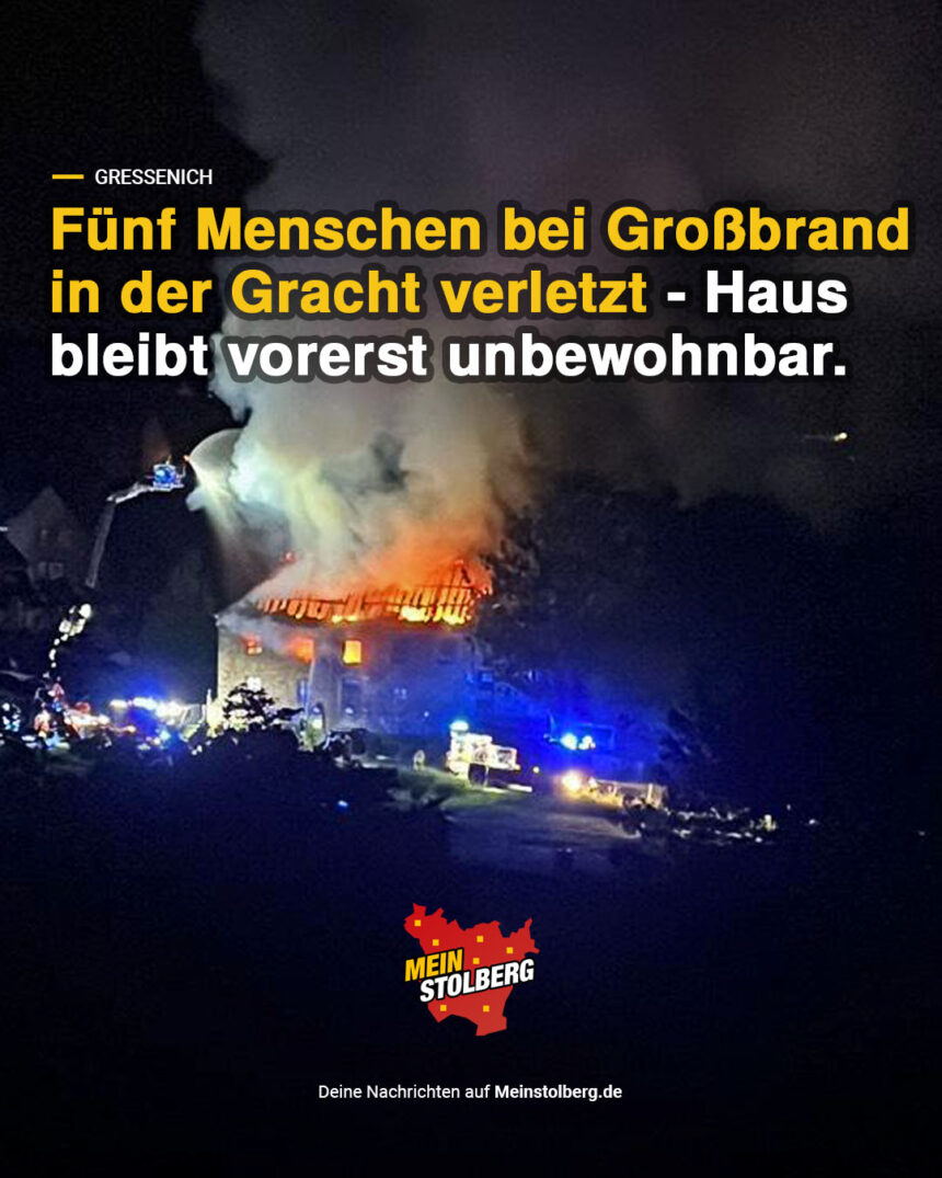 In der Nacht von Mittwoch auf Donnerstag ist in der Gracht in Gressenich ein verheerenden Feuer ausgebrochen: Gegen 2 Uhr geriet dort ein Wohnhaus aus bislang noch ungeklärter Ursache in Brand. Als die Feuerwehr kurz darauf mit einem Großaufgebot anrückte, schlugen bereits meterhohe Flammen aus dem Gebäude – das Feuer hatte sich da schon auf das gesamte Haus ausgebreitet.