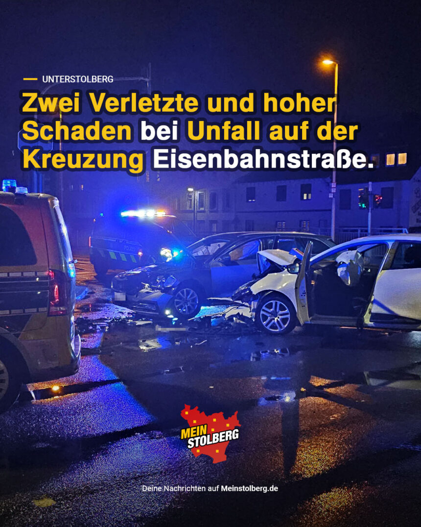 Ein Verkehrsunfall hat am Montagabend für Aufsehen an der Kreuzung Europastraße/Eisenbahnstraße gesorgt. Gegen 21.45 Uhr stießen auf der vielbefahrenen Straße zwei Fahrzeuge zusammen, wobei zwei Menschen leicht verletzt wurden.